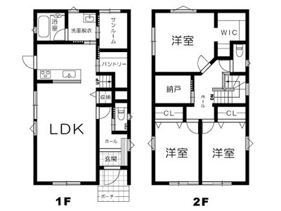 [1F]LDK17.8、パントリー、洗面、浴室、トイレ、サンルーム [2F]洋7.8+WIC、洋6、洋6、トイレ、納戸 |