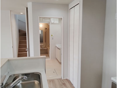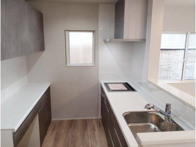 三和小学校近く、使い易い家事動線、収納も上手く取り入れた、スッキリした間取り。しかも角地、南側から十分に日当りが確保され、シンプルかつ機能的に仕上げた物件です